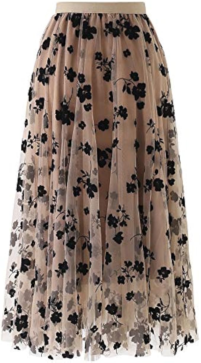 CHICWISH 女款焦糖色/灰藍色/白色/黑色 3D 立體立體雙層網眼中長裙